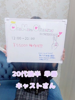 在籍期間:8ヶ月出勤:8時間 週3~4月収:80万以上【お店の良いところ】回転率が良く、毎回完売になります。スタッフさんも優しく、気遣いしてくれます。毎月安定して稼げてます♪