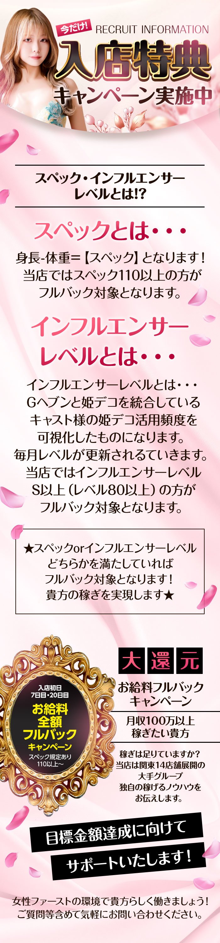 【インフルエンサーレベルSorスペック110以上!】今ダケ!お給料全額フルバックキャンペーン!〈貴方のスペック〉を活かして月収100万以上稼ぎましょう!