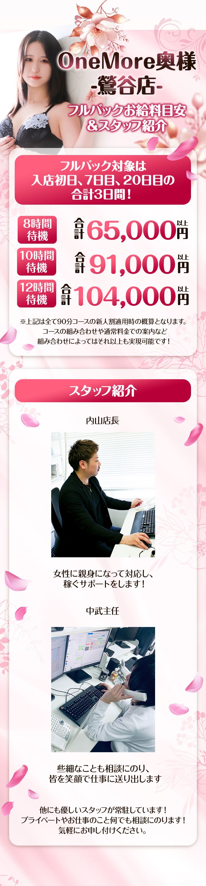 | A | 当店は雑費が御座いません!ご自身で稼いだ金額が全てお給料になります。 |