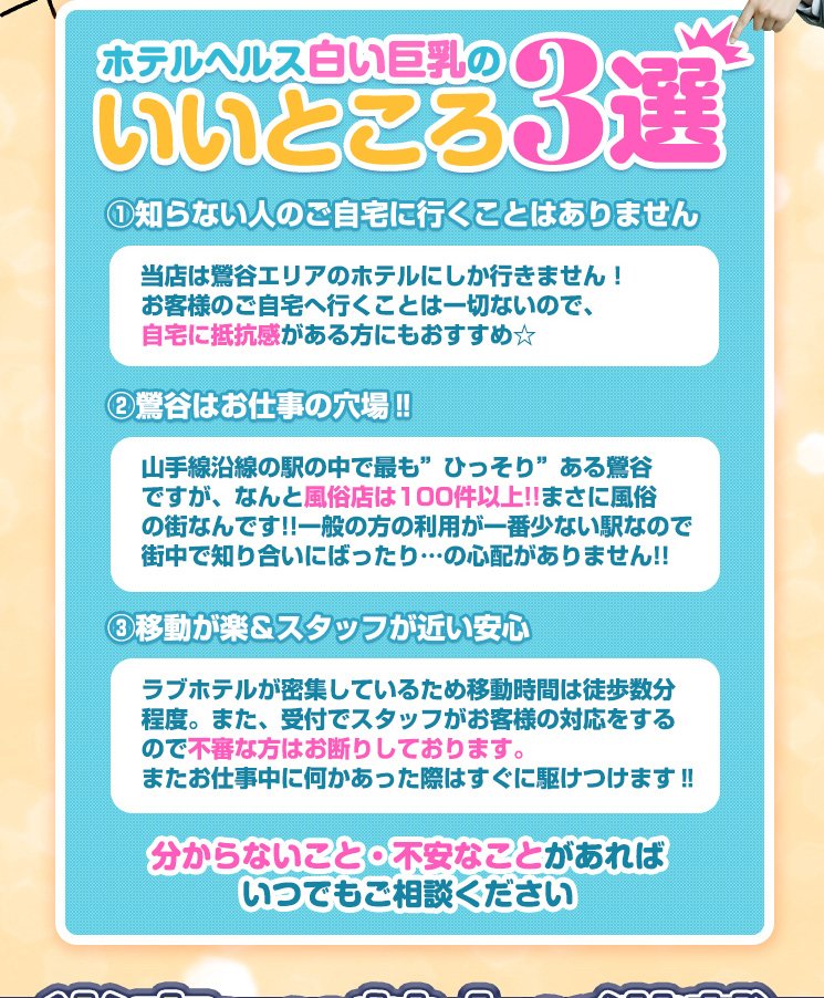 【お得な特典・詳細は公式HPで掲載中「白い巨乳鶯谷店+求人」で検索!】