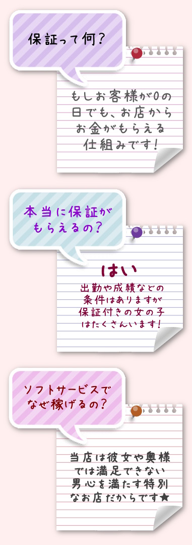 当店では写メ日記サポートも充実しております。写真や動画を撮りたいけれど、一人だとうまく撮れない、加工や修正ができない等のお悩みはお店側が協力します。ポーズの提案も可能ですので、あなたの魅力やイメージを十分に引き出すことができますよ。写真、動画一つで全然稼げる金額が変わってくる場合もあるので、一緒に頑張りましょう。