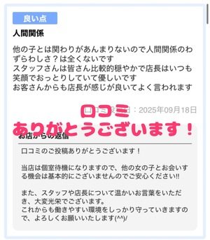 またまた在籍の女の子から口コミ頂きました♪