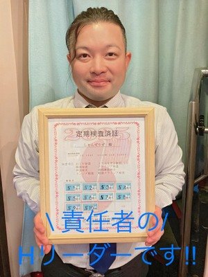 写真の責任者のHさんが持っている検査証明書は当グループが提携している検査機関から毎月送られてくるもので当店では待合室に掲示してあります(≧◇≦)