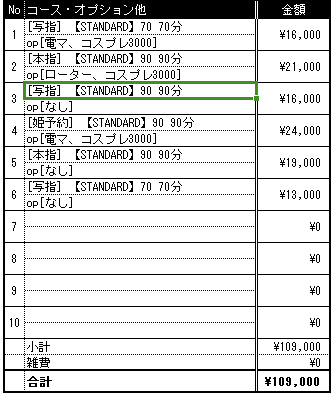 ※サンプル精算。時間帯・指名・オプション等により変動します。