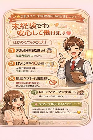 | 🌷 未経験者向けの配慮について こんにちは、スタッフ坂です😊 「未経験でも本当に大丈夫ですか?」という質問、いちばん多いです。 なので今日は、当店が未経験の方にどんな配慮をしているか、正直にまとめます。 |