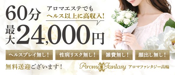 ■ 基本コースバック(地域最高水準) ⏱️ 60分: 8,000円 ~ 最大 15,000円 ⏱️ 90分: 11,000円 ~ 最大 18,000円 ⏱️ 120分: 14,000円 ~ 最大 21,000円 ⏱️ 150分: 19,000円 ~ 最大 33,000円 ⏱️ 180分: 22,000円 ~ 最大 36,000円 ■ 充実の各種手当(フルバック) 本指名: +3,000円 トップレス: +3,000円 オールヌード: +5,000円(※98%以上の女の子が獲得中!) ■ 指名・予約バックでさらに加算! 事前ネット予約: 1,000円 他店からの紹介指名: 5,000円 SNS(X等)初回指名: 4,000円 リクエスト予約: 最大4,000円 📈 頑張るほど単価UP!ランクアップ制度 (※達成翌月の1ヵ月間適用) ① 20本達成: コースバック一律 1,000円~2,000円UP! ② 35本達成: さらに本指名バックが +1,000円! ③ 55本達成: 基本バックがさらに大幅ランクUP! 60分:10,000円 / 120分:16,000円 / 180分:26,000円など ✨ 最高ランク(155本達成)なら… 60分:15,000円 180分:36,000円 驚愕のバック単価で、短時間でも圧倒的に稼げます! 📢 安心の「手取り最大化」宣言 雑費・システム料: 一切なし! お支払い: 全額完全日払いOK! インボイス: 柔軟に対応しております。 「頑張った分は1円も引かずに、その日のうちに全てあなたの手に。」 アロマファンタジー高輪は、あなたの努力を最高給で評価します。 給与シミュレーションはこちら |