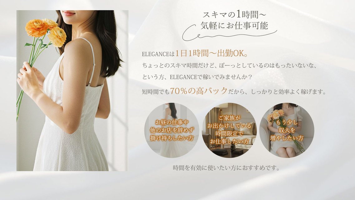 エレガンスは【1日1時間】からの出勤でも大歓迎! 忙しい毎日の中でも、スキマ時間を上手に活用してきち...