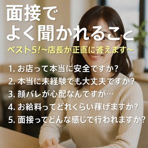 ちなみに体験入店は「全額日払い&保証つき」です。気になる方はまず一度、話だけでも聞きに来てください♪