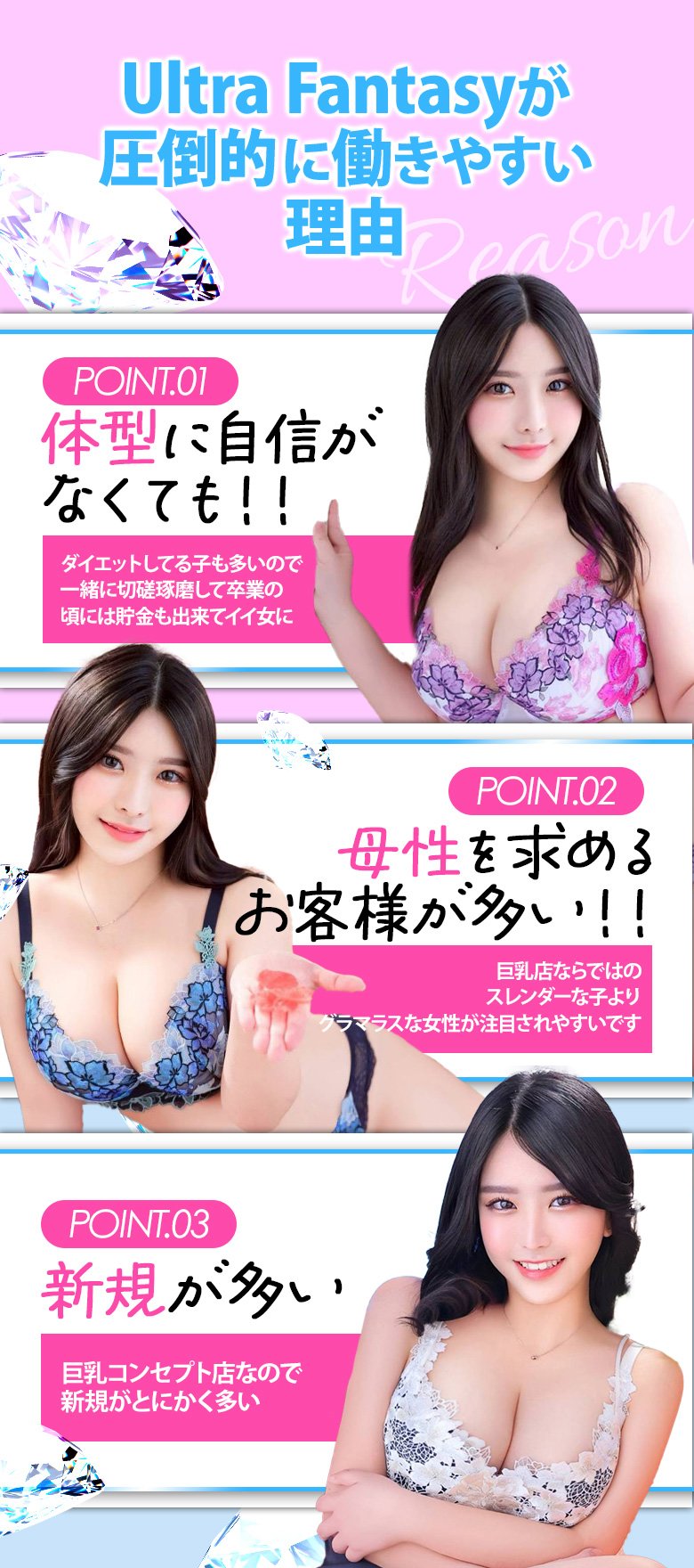 即日体験入店OK🎀一切嘘無し!本当に全員貰える入店祝い金30万円💖🎀待遇もプレイも、“巨乳好き”に選ばれるお店No.1🎀 金額も条件も、他店より確実に高条件を提示します。 バストが武器になるこのお店で、あなたの魅力を最大限に活かします。もし迷われている方は他店の条件をお知らせください。