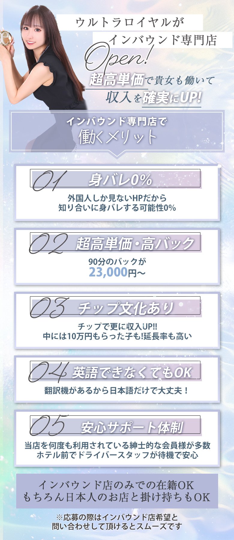 店舗営業時間:9時~翌朝5時/求人受付時間:完全24時間対応で専門部署の担当者が即返信します。「ウルトラロイヤル」希望とお伝えください!