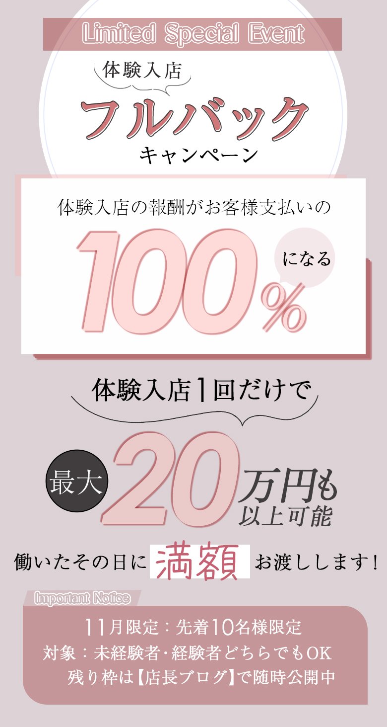 「やってみたいけど勇気が出ない…」そんなあなたを全力で応援します!入店してくれた方全員に【入店祝い金30万円】支給♪全員が対象だから、初日から安心して働けます。経験やブランクは問いません。あなたの新しいスタートを一緒に作りましょう!