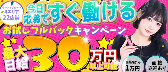 「やってみたいけど勇気が出ない…」そんなあなたを全力で応援します!入店してくれた方全員に【入店祝い金30万円】支給♪全員が対象だから、初日から安心して働けます。経験やブランクは問いません。あなたの新しいスタートを一緒に作りましょう!
