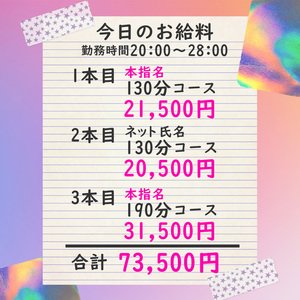 見ていただいて分かる通り、全てロングコース、しかも指名付きのお仕事ばかり。特に「本指名」はリピート率の高い証です。