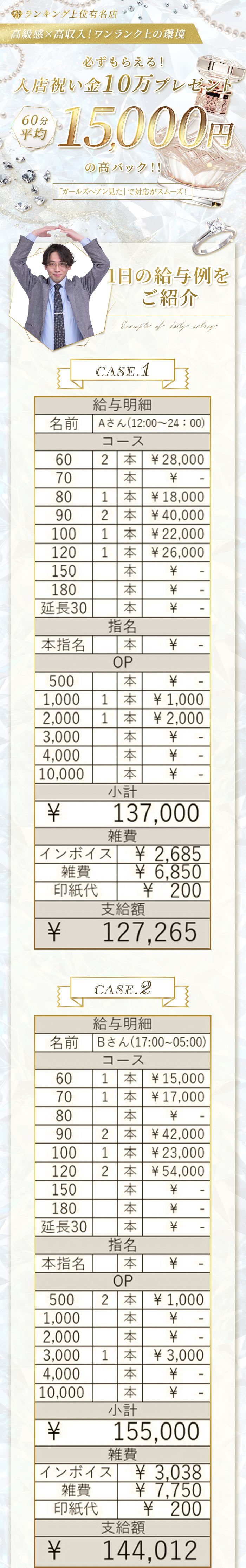 | A | 採用基準に関しましては、面接時の話し方やどれくらい稼ぎたいか等把握した上で判断させて頂きます。 その際に年齢・容姿・タトゥーなどは基本的には考慮してませんのでどんどんご応募お待ちしております。 |
