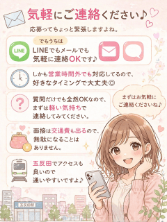 質問だけでも全然OKなので、 まずは軽い気持ちで連絡してみてください。