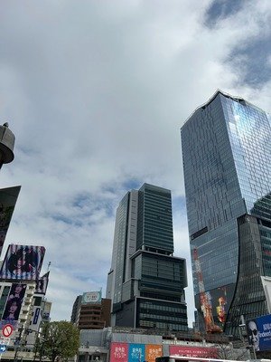 渋谷駅へ戻る途中、スクランブル交差点で空を見上げたら、aespaのカリナの広告映像が流れてました。写真の左下のところです。
