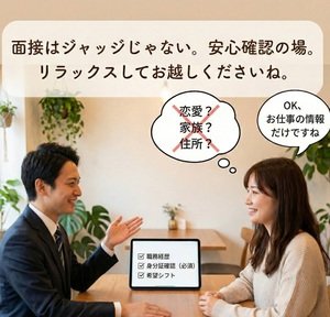 当店の面接では、あくまでも“お仕事に必要な情報のみ”をお伺いしています。