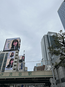 TWICEからKPOPファンのムツキです!渋谷のスクランブル交差点で空を見上げて、aespaのカリナの広告映像を見てホッコリ。