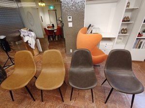 今回4脚新しくしましたが、すべて組み立てはスタッフが行いました。この新しい椅子でくつろいだり、談笑したり、スタジオなのでこの椅子で、女性が美しく写ればなお良いですね。