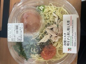 【冷製パスタ 明太子と蒸し鶏と大葉】
