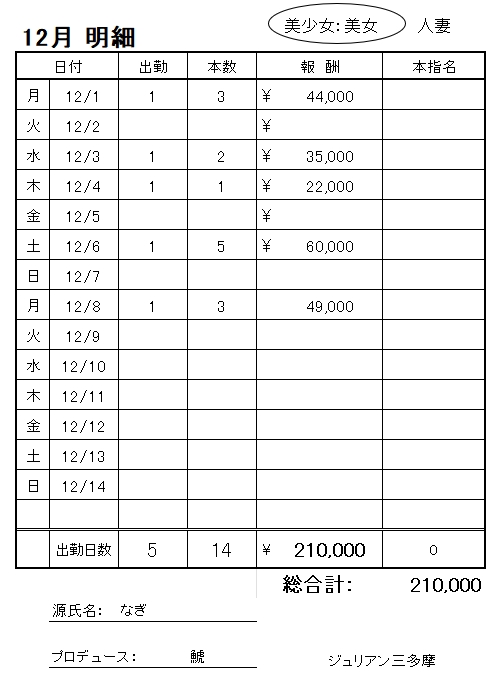 明細は、入店1月目の《なぎちゃん》。