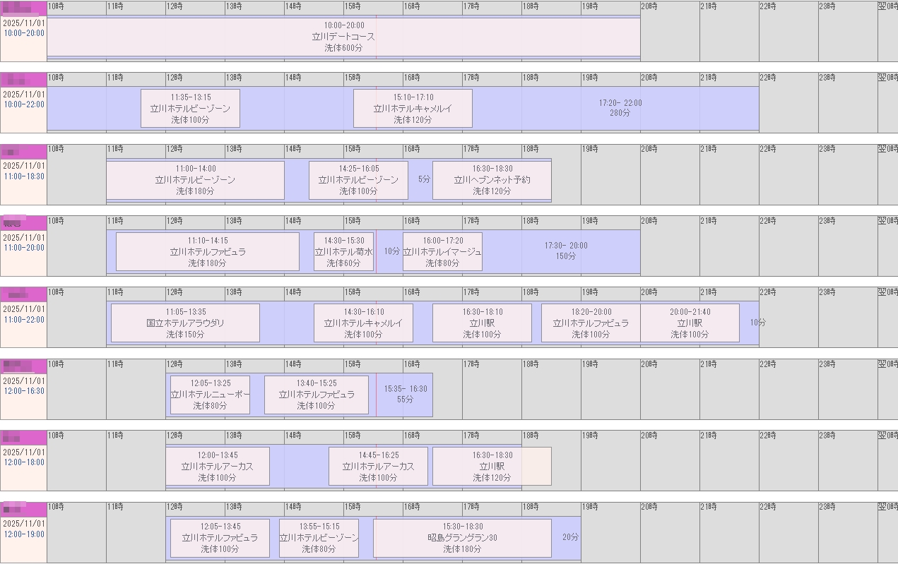 ※本日11/1(土) 当店の稼働の一部です。稼働の棒グラフ