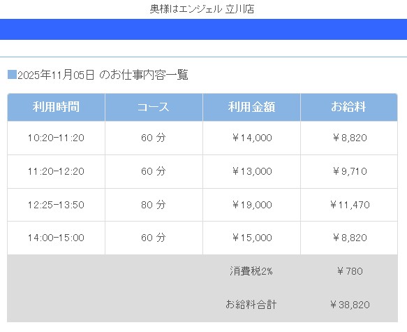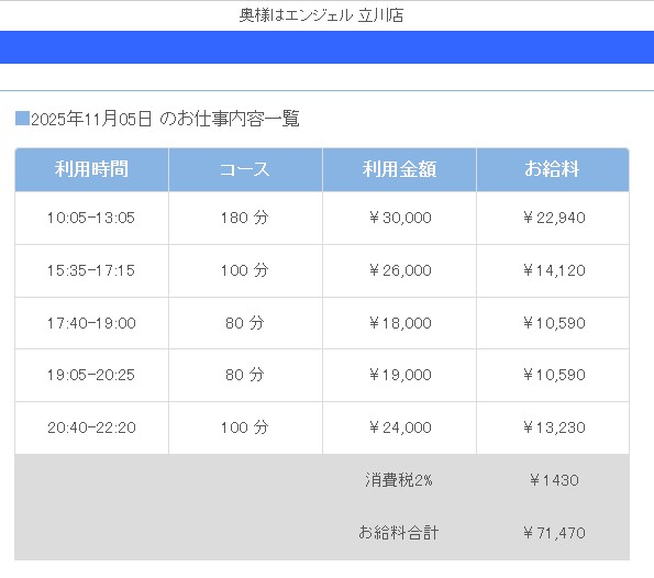 ※本日11/5(水)出勤のキャスト様のお給料明細🎶