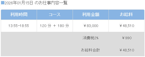 しかも延長も入り、高いバック率も相まってお給料は48,510円!!