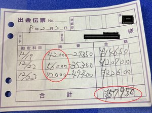 写真の伝票の記載からして...このキャスト様はちょっと出勤時間が短いので金額はそこまで延びておりませんが...