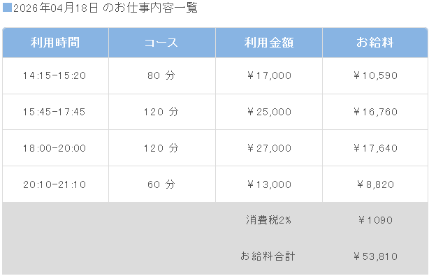 ちなみに本日体験入店3日目を迎えたキャストさんの明細もパシャリ📷