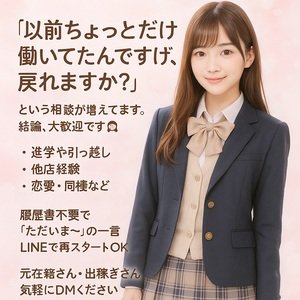 最近「以前ちょっとだけ働いてたんですけど、戻れますか?」という相談が増えてます。結論、大歓迎です🙆♀️ 辞めた理由は問いませんし、気まずさゼロ。進学や引っ越し、他店経験など理由は色々でも「また働こう」と思ってくれたこと自体が嬉しいんです。履歴書不要で「ただいま~」の一言LINEで再スタートOK✨ 前回と同じスタイルも可能。元在籍さん・出稼ぎさん、気軽に連絡お待ちしています☺