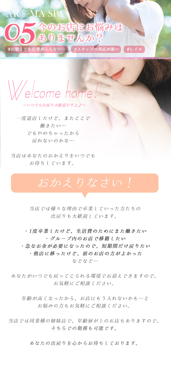 アロマSpa富山店の求人サイトをご覧いただきましてありがとうございます♪